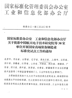 國家標準委及工信部批復我公司開展國家高端裝備制造業標準化試點工作